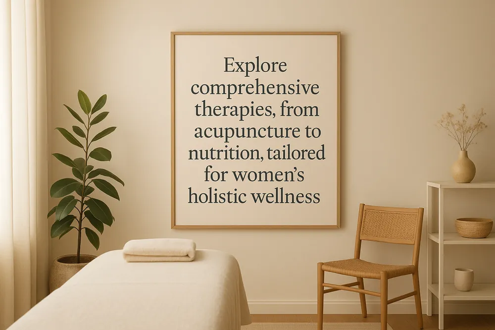 Acupuncture and Herbal Medicine: Rooted in Traditional Chinese Medicine and Ayurveda, acupuncture uses fine needles to stimulate energy points, reducing pain, stress, and hormonal imbalances. Herbal medicine employs plant-based remedies tailored to women's unique needs, supporting reproductive health, mood regulation, and immunity.