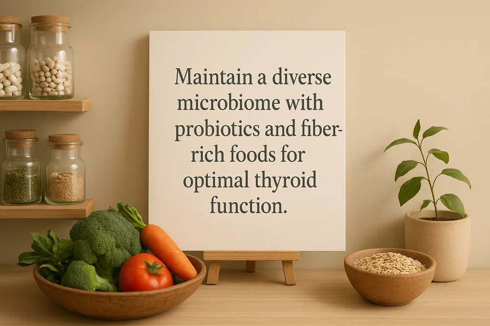 - Maintaining gut health via fiber, probiotics, and fermented foods enhances thyroid hormone conversion and autoimmune regulation.