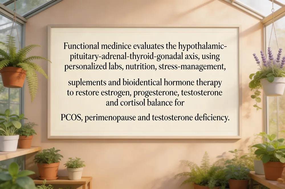 Functional medicine doctors do help with hormones. By viewing the body as an interconnected system, they assess the hypothalamic‑pituitary‑adrenal‑thyroid‑gonadal axis to uncover root causes of estrogen, progesterone, testosterone, and cortisol disruptions. Personalized labs, nutrition, stress‑management, targeted supplements, and bioidentical hormone therapy are combined to restore balance, especially for PCOS, perimenopause, and testosterone deficiency.