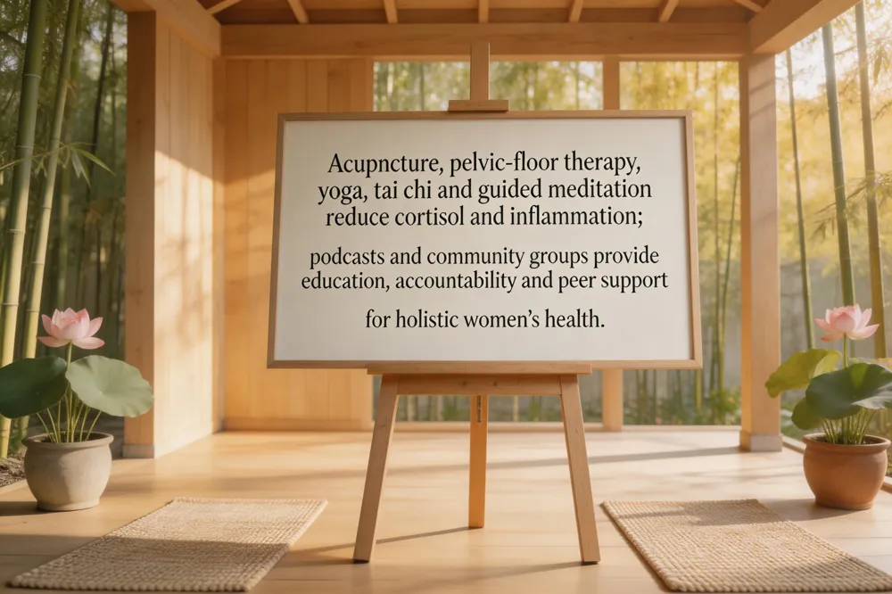 Yoga, tai chi, and guided meditation are evidence‑based mind‑body practices that lower cortisol, improve sleep and support hormonal balance across the menstrual cycle. Regular 20‑minute sessions of gentle flow or breath‑focused meditation can reduce inflammation markers by up to 25 % and enhance mental clarity.