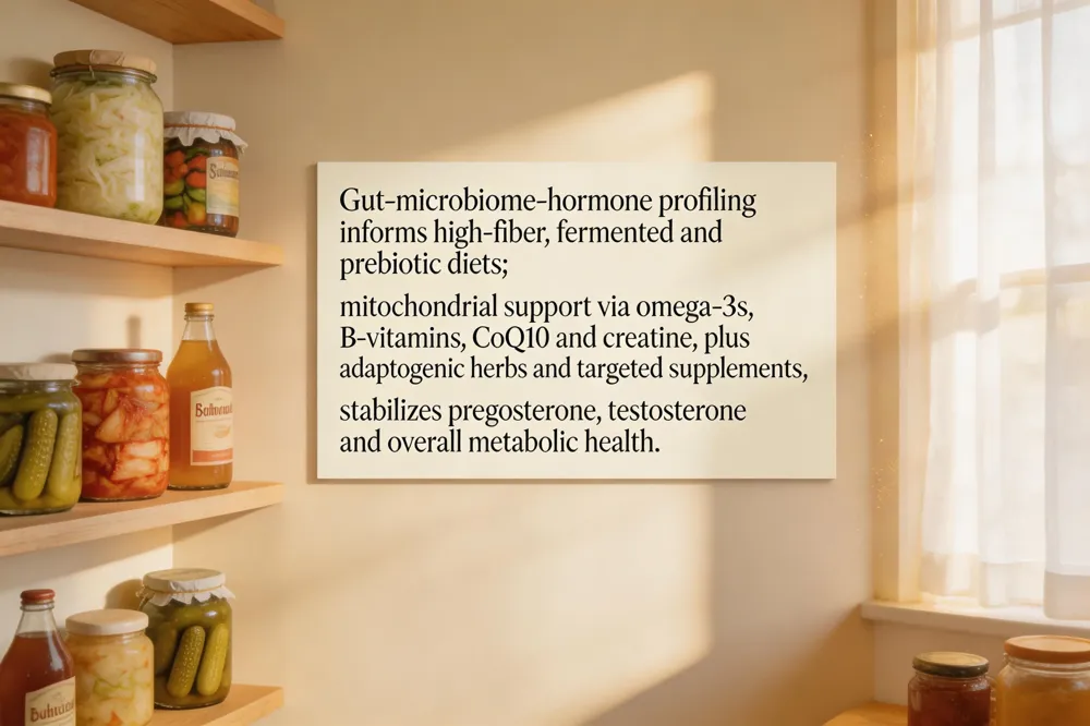 A gut‑microbiome‑hormone axis is now recognized as a cornerstone of women’s health. Functional labs that map microbial diversity, intestinal permeability, and estrogen‑metabolizing bacteria guide individualized nutrition—high‑fiber foods, fermented vegetables, and prebiotic fruits restore a balanced microbiome, which in turn stabilizes progesterone and testosterone cycles.