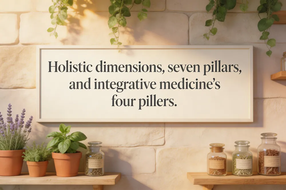 Integrative medicine blends conventional care with evidence‑based complementary therapies with nutrition counseling, Acupuncture, yoga, and botanical medicine, creating a whole‑person plan that targets root causes rather than isolated symptoms. It is especially useful in women’s health, where hormonal balance, lifestyle, and stress intersect. Holistic health rests on five interrelated dimensions—physical wellness (nutrition, exercise, sleep, environment), mental/intellectual wellness (cognitive clarity, purposeful thinking), emotional wellness (recognizing and expressing feelings), social wellness (supportive relationships and community), and spiritual wellness (purpose and connection). This definition emphasizes the interconnectedness of body, mind, spirit, social ties, culture, and environment. The seven pillars of holistic wellness—physical, emotional, spiritual, intellectual, social, environmental, and nutritional health—guide personalized interventions. Integrative medicine’s four pillars—nutrition, sleep, movement, and relaxation (mind‑body stress‑management)—provide a structured framework for clinicians and patients to co‑create sustainable, evidence‑based wellness plans.