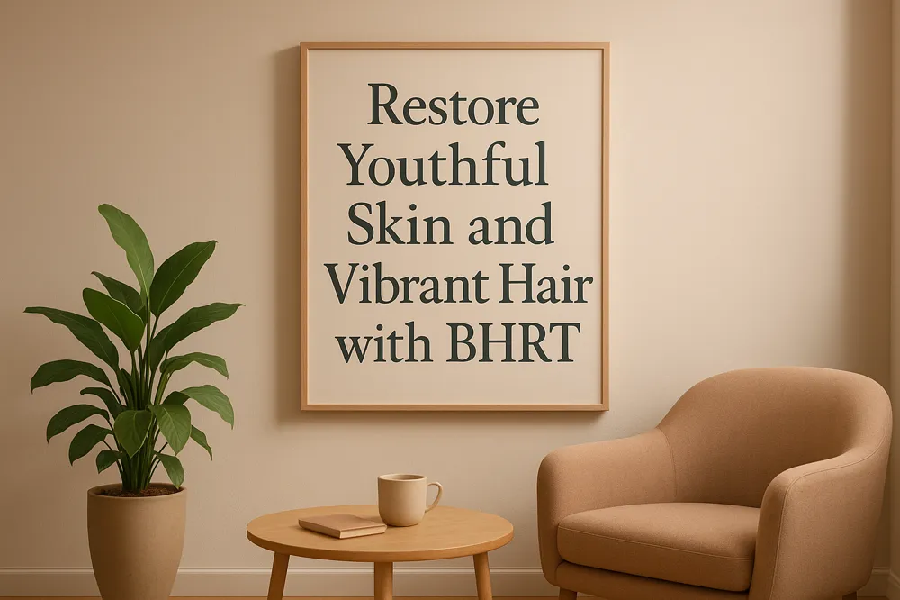 Bioidentical hormone replacement therapy (BHRT) helps restore hormone levels such as estrogen and progesterone, which play vital roles in maintaining skin and hair health. Estrogen supports skin hydration and elasticity by stimulating collagen production, which diminishes wrinkles and fine lines, resulting in smoother and more youthful skin texture.