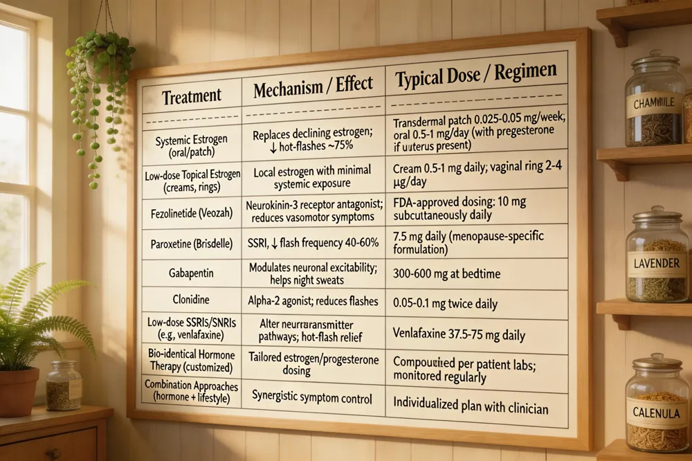 Hormone replacement therapy (HRT) remains the most effective option for moderate‑to‑severe vasomotor symptoms, with systemic estrogen (often combined with progesterone) reducing hot‑flash frequency by roughly 75 % compared with placebo. Transdermal estradiol patches and low‑dose topical estrogen formulations deliver steady hormone levels while minimizing first‑pass metabolism, making them a preferred choice for women who need symptom relief but want lower systemic exposure.