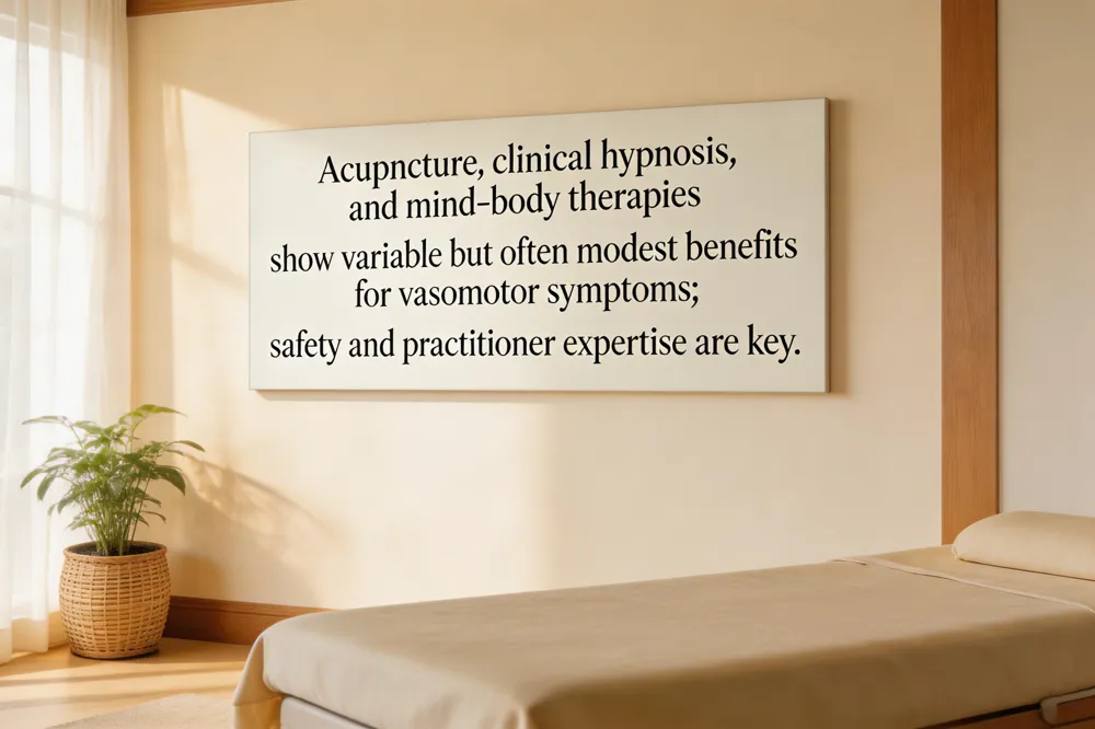 - Acupuncture: weekly sessions can lower hot‑flash severity and improve sleep quality when performed by trained practitioners.