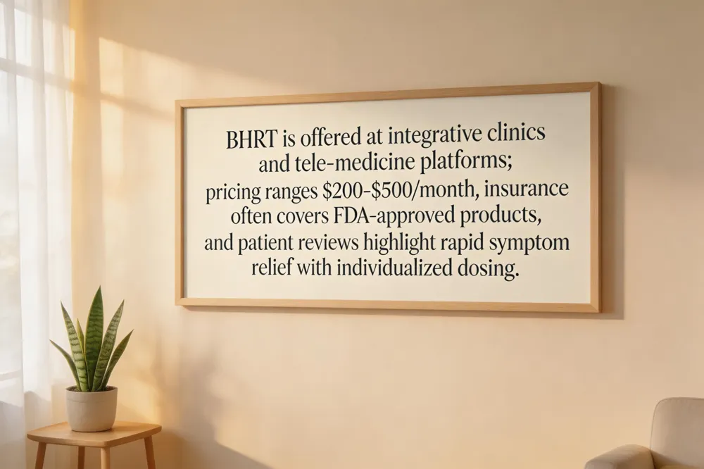 Bioidentical hormone therapy (BHRT) is widely available through integrative clinics such as Modern Medicine in Dallas (5000 Belt Line Rd., Suite 900) and Forney (992 E US Hwy 80, Suite C). To find BHRT near you, start with online directories that filter by specialty and distance, ask your primary‑care or naturopathic physician for referrals, and consider tele‑medicine options that connect you with board‑certified hormone specialists. Patient testimonials consistently highlight rapid relief of hot flashes, night sweats, mood swings, and improved sleep—often within weeks—though some users need dose tweaks and may face higher out‑of‑pocket costs. Typical pricing ranges from $200‑$500 per month, varying by hormone type, delivery method (creams, patches, pellets), and whether the product is FDA‑approved or custom‑compounded. Insurance may cover FDA‑approved formulations but rarely compounded ones; using an HSA/FSA or clinic‑payment plans can reduce expenses. Regular labs, symptom tracking, and follow‑up visits are essential for safe, personalized care.