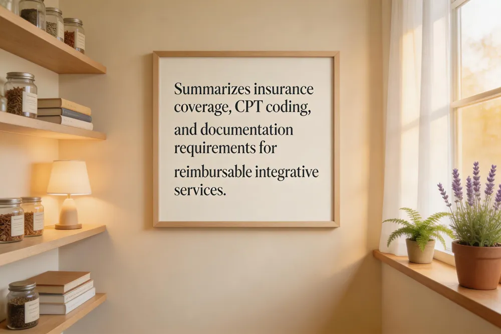 Insurance coverage for integrative medicine depends on your specific plan and insurer. Many policies will reimburse services such as acupuncture, chiropractic care, and medically‑indicated nutritional counseling, especially when they are part of a treatment plan for a diagnosed condition. However, supplements, wellness coaching, and alternative therapies deemed experimental are frequently excluded, and some plans require a referral or prior authorization. Medicare and many private plans do cover certain supportive services—like acupuncture or massage—for cancer patients, but coverage can vary widely. Documentation and billing practices are crucial: providers must use appropriate CPT codes, attach detailed clinical notes that link the service to a diagnosed condition, and often submit a letter of medical necessity. Patients should verify their benefits, obtain any required referrals, and keep copies of all paperwork to ensure smooth reimbursement.