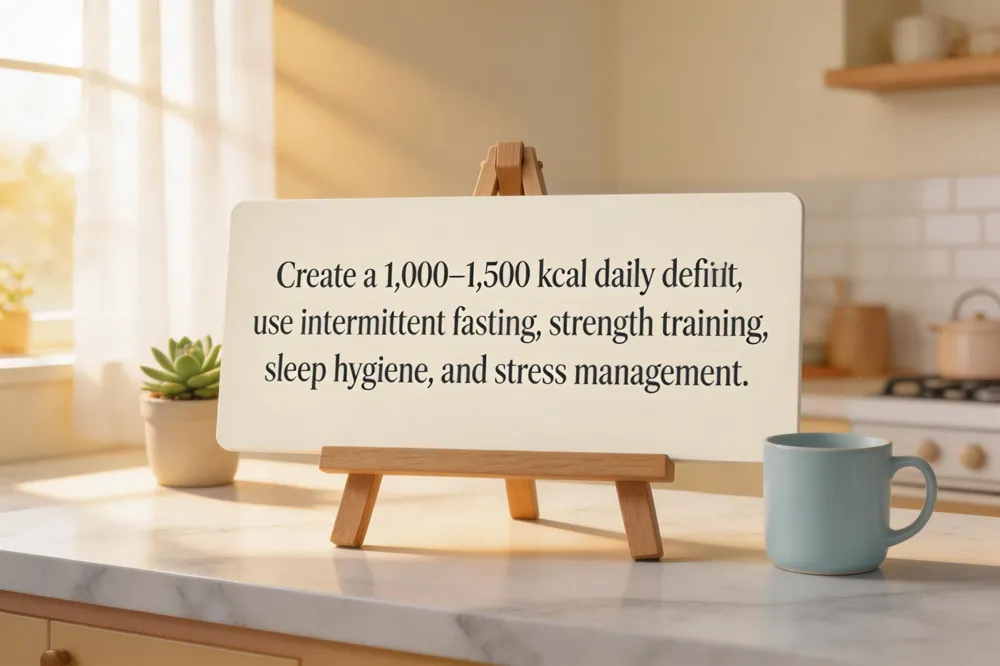 Creating a modest daily calorie gap of 1,000–1,500 kcal is the cornerstone of a safe 20‑pound loss. Use a food‑journal or app to track portion‑controlled, nutrient‑dense meals that meet the USDA MyPlate recommendations for women (e.g., 2 cups fruit, 2½ cups veg, lean protein, whole‑grain carbs, healthy fats). Pair this with an intermittent‑fasting window—such as 16/8—to streamline eating times while preserving muscle‑building protein at each meal.