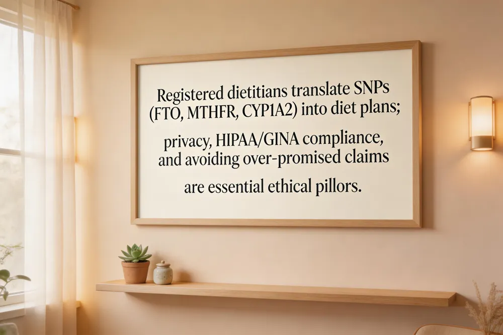 Professional guidance is essential when translating DNA results into a usable nutrition plan. A registered dietitian or functional‑medicine practitioner can place genetic variants—such as FTO, MTHFR, or CYP1A2—within the broader context of diet, activity, stress, and sleep, preventing over‑reliance on a single test. In a functional‑medicine framework, DNA‑based supplements are tailored to identified deficiencies or sensitivities; for example, an MTHFR variant may prompt a higher‑dose methyl‑folate, while a CYP1A2 fast‑metabolizer might tolerate more caffeine. Early studies suggest modest benefits, but robust clinical evidence remains limited, so supplementation should be supervised by a qualified clinician. Privacy and ethics matter: companies must encrypt data, comply with HIPAA/GINA, and allow users to delete their genetic information. Ethical concerns include potential insurance discrimination and the marketing of unproven claims. Consumers should view DNA testing as a complementary tool within a holistic, professionally guided wellness plan.