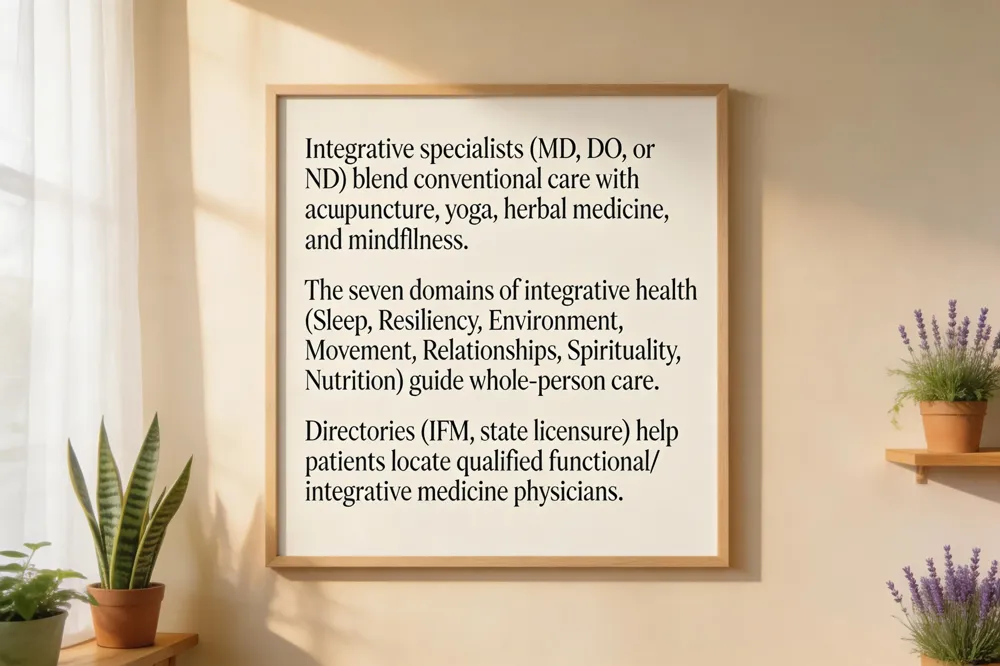 Is an integrative medicine specialist a doctor? Yes—licensed physicians (MD, DO, or ND) with additional integrative training.