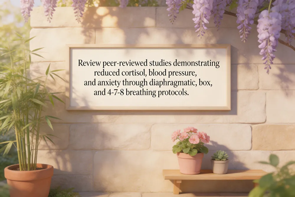 Box (square) breathing research Box (square) breathing—equal inhale, hold, exhale, hold—has been shown to reduce cortisol, modestly lower blood pressure, and improve heart‑rate variability, reflecting balanced autonomic activity (Stanford investigators; Healthline 2023.