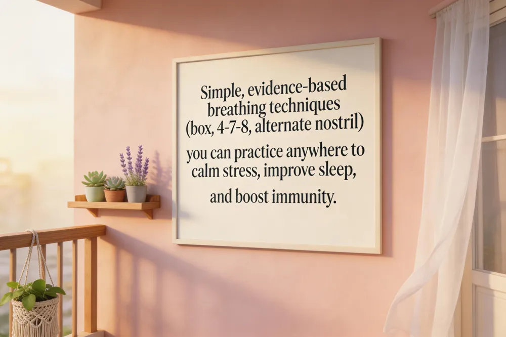 Breathing exercises for mental health – Box breathing, 4‑7‑8, and alternate‑nostril breathing can be done anywhere to lower anxiety, stabilize mood, and improve sleep, providing a quick, drug‑free tool for stress management.