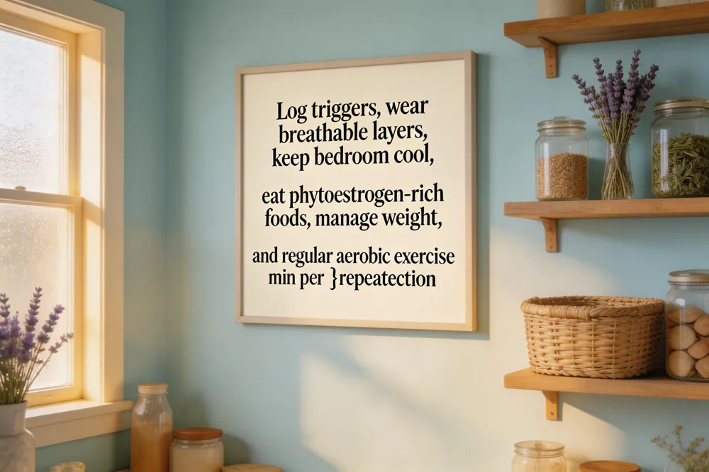 A holistic assessment starts by tracking personal triggers—caffeine, alcohol, spicy foods, stress, tight clothing, and hot environments—while also noting risk factors such as overweight, smoking, and early onset of flashes. Using this diary, clinicians and patients can blend evidence‑based lifestyle changes (layered breathable clothing, cool rooms, regular aerobic exercise, weight loss) with mind‑body techniques (cognitive‑behavioral therapy, paced breathing, mindfulness, hypnosis) that have shown modest reductions in perceived severity. Phytoestrogen‑rich foods (soy, flaxseed, legumes) and low‑dose vitamin E may be added for those seeking non‑hormonal support, but safety and dosing should be reviewed. If symptoms remain frequent, intense, or disrupt sleep and mood, a referral for prescription options—SSRIs, gabapentin, NK3 antagonists, or hormone therapy—should be discussed with a qualified provider.