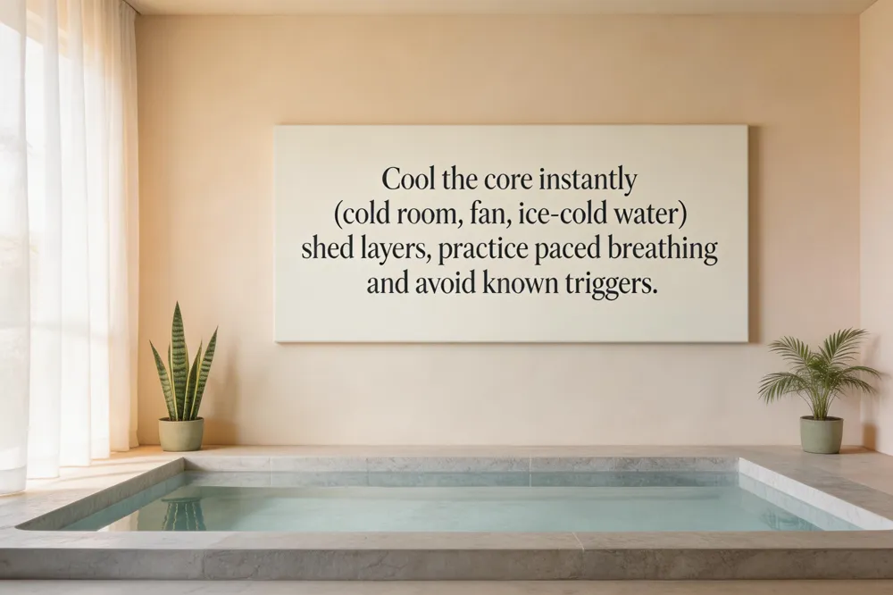 Smart clothing choices and environment cooling help the body react quickly when a flash starts. Dress in lightweight, breathable layers of cotton or linen so you can remove a layer instantly. Keep the bedroom cool (65‑68 °F), use fans or air‑conditioning, and sip ice‑cold water to stabilize temperature.
