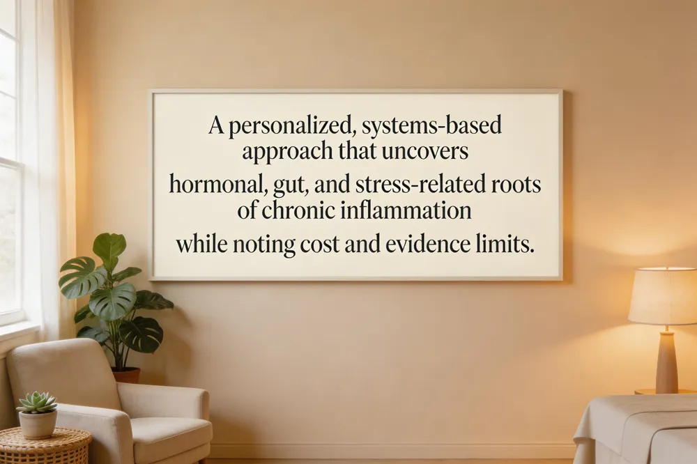 It is a personalized, integrative approach that uncovers and treats hormonal imbalances, gut dysbiosis, chronic inflammation, and stress‑related pathways—issues shown to be modulated by mind‑body practices like yoga, tai chi, and meditation, which lower CRP, IL‑6, and NF‑κB activity in women.