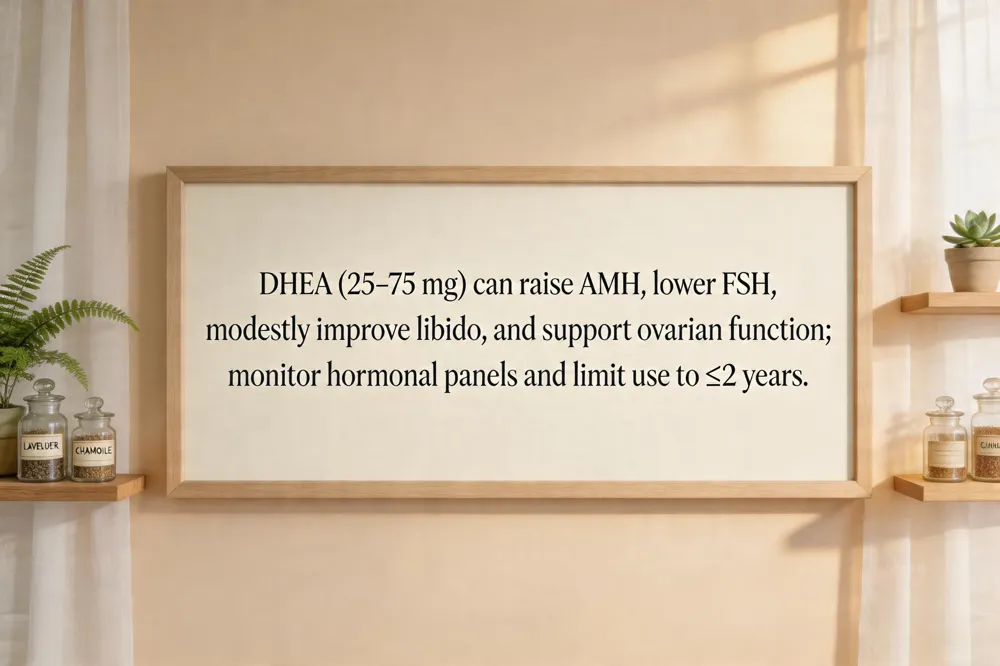 Overall, DHEA is generally safe for up to two years at ≤50 mg daily; common mild side effects include acne, upset stomach, and mood changes, but it should be avoided in pregnancy, liver disease, hormone‑sensitive cancers, or when taking interacting medications. A personalized, lab‑guided approach—checking DHEA‑S, AMH, and FSH before and during supplementation—offers the most evidence‑based pathway to optimizing sexual health and ovarian vitality.