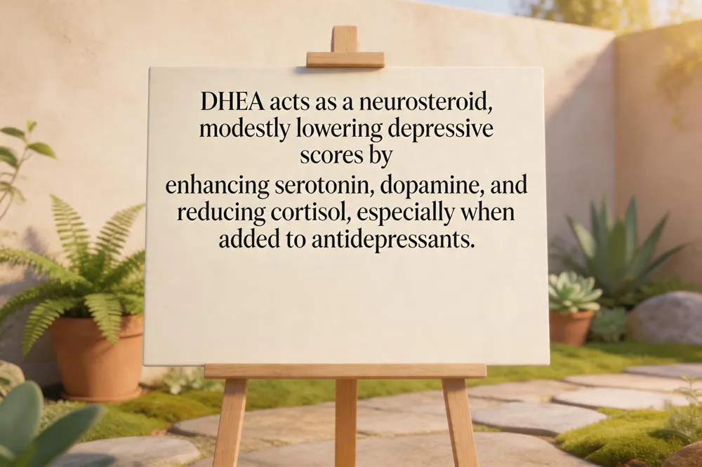 Low DHEA levels have been linked to depressive symptoms. Small, low‑quality trials report that men with low baseline DHEA experience modest mood lifts and reduced depressive scores when taking [30–50 mg of DHEA for 8 weeks. While not a first‑line therapy, DHEA can be a complementary option when mood changes accompany adrenal decline.
