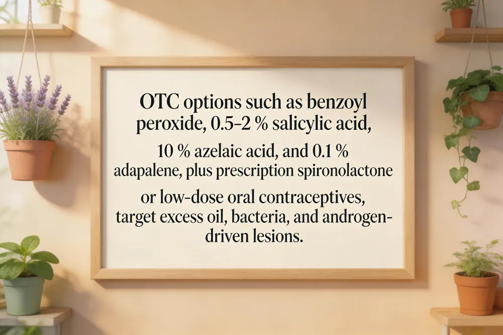 Anti‑androgen medication such as spironolactone is often prescribed for cystic, oily lesions. Starting at 50 mg daily, the dose can be raised to 100–150 mg while monitoring potassium and menstrual changes. Combination with a low‑dose oral contraceptive improves hormonal regulation and enhances results.