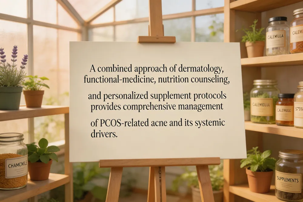 Integrative office‑based care blends dermatology with functional‑medicine to treat PCOS acne at its source.