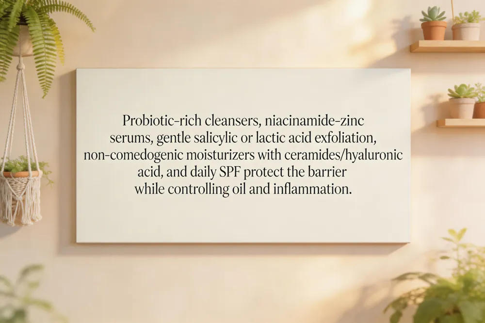 Probiotic‑rich cleansers such as a gentle, sulfate‑free formula with Lactobacillus pre‑biotics help regulate the skin microbiome while removing sebum without stripping moisture.
