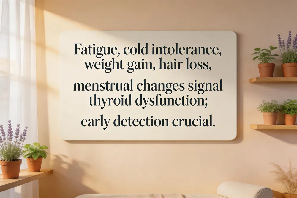 Six classic signs of selenium deficiency are infertility, muscle weakness, low‑thyroid‑like symptoms (fatigue, cold intolerance, weight gain), mental fog, hair loss, and frequent infections – all reported in clinical reviews of women’s health. Common thyroid‑related complaints in females include persistent fatigue, cold sensitivity, weight gain, constipation, dry skin, brittle nails, thinning hair, brain fog, depression, menstrual irregularities, and a slower heart rate. Early warning cues that merit attention are unexplained fatigue, cold intolerance, constipation, dry skin or hair, subtle weight shifts, mood swings, menstrual changes, and a barely perceptible metabolic slowdown. In total, nineteen signs of thyroid dysfunction in women span fatigue, weight gain, cold intolerance, dry skin, hair loss or thinning, brittle nails, constipation, depression, brain fog, slowed heart rate, facial puffiness, peripheral edema, menstrual irregularities, reduced libido, muscle aches, joint pain, cholesterol rise, and a palpable goiter. Untreated symptoms are dangerous: hypothyroidism can cause infertility, pregnancy complications, and cardiovascular disease, while hyperthyroidism raises the risk of osteoporosis, arrhythmias, and fetal harm. Selenium supplementation (100–200 µg/day) has been shown to cut anti‑TPO antibody levels by 30‑50 % in Hashimoto’s patients, helping to temper autoimmune activity even if hormone levels change slowly.