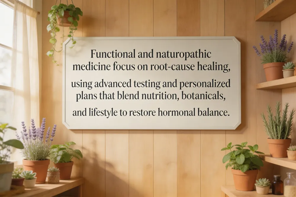 | Naturopathic Medicine | Whole-person healing, treating underlying imbalances | Comprehensive health history, physical exam, standard & functional labs | Herbal botanicals, dietary counseling, lifestyle modification, bioidentical hormones or body-identical HRT |