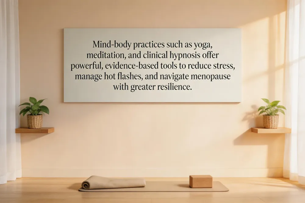 | Mind-Body Practices | Yoga, meditation, clinical hypnosis, paced breathing. | Reduce stress, improve sleep, lessen hot flash bothersomeness. | Evidence-based for symptom impact; often provides immediate relaxation. |